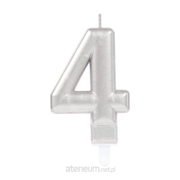 Świeczki cyferki 4 Sparkling Celebrations z uchwytem srebrna 9.3 cm