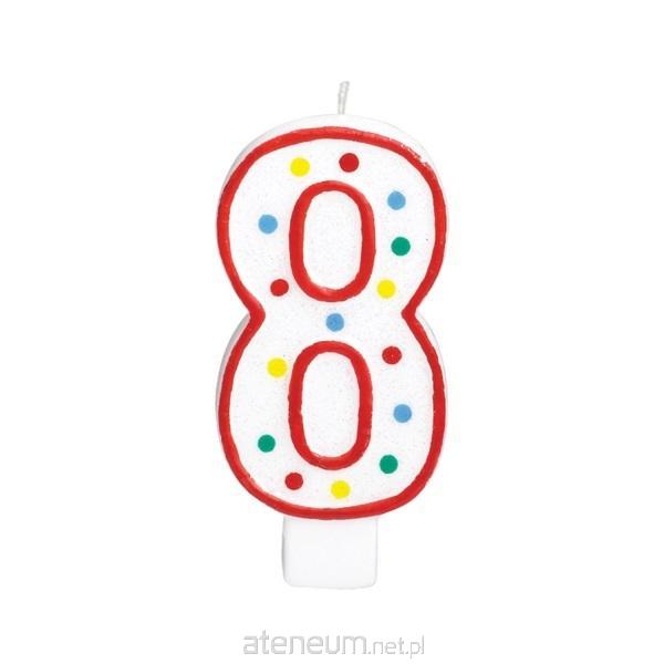 Świeczka urodzinowa cyferka 8 biała w kropki