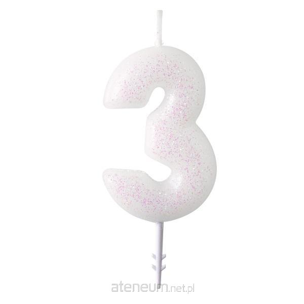 Świeczka cyferka 3 Sparkling Celebrations srebrna