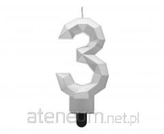 Świeczka cyferka 3 - Diament metalik srebrny 7,6cm
