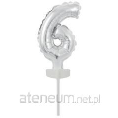 Balon foliowy mini cyfra 6 srebrna 7x12cm