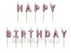 Świeczki urodzinowe Happy Birthday różowe 13szt
