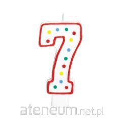 Świeczka urodzinowa cyferka 7 biała w kropki