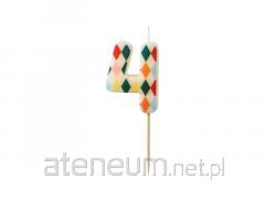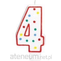 Świeczka urodzinowa cyferka 4 biała w kropki