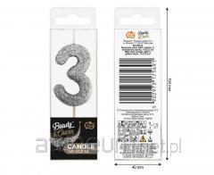 Świeczka piker 3 czarna brokatowa 11x3.5 cm