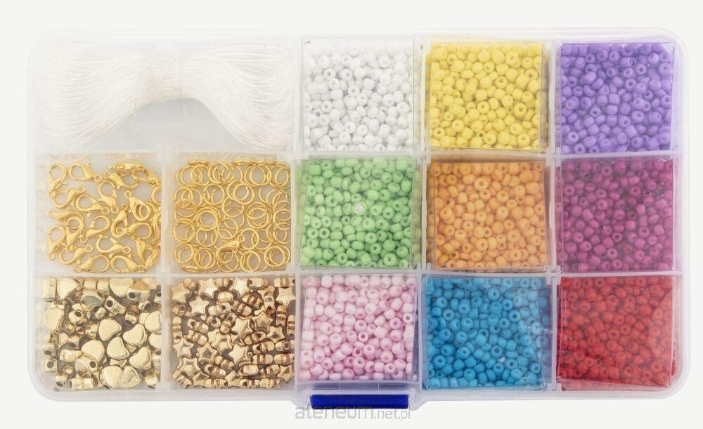 Koraliki w pudełku o wymiarach 10 x 17 cm. Zestaw zawiera: