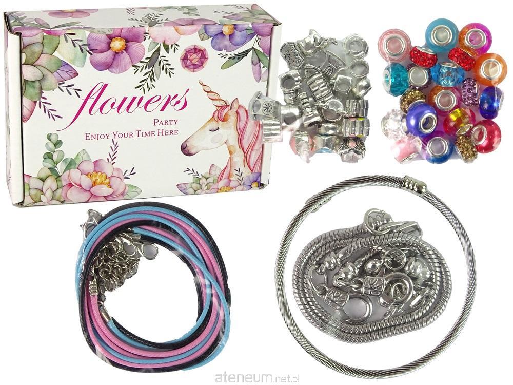 Zestaw Bransoletek, Łańcuszków oraz Kolorowych Koralików do Biżuterii Ten zestaw świetnie sprawdzi się dla dziewczynek, które uwielbiają biżuterię. Pomoże on pobudzić wyobraźnię oraz poprawi zdolności manualne. Nowa bransoletka czy naszyjnik? Nie ma problemu. Każda znajdzie coś dla siebie, a przy tym będzie się świetnie bawiła. Całość jest zapakowana w kolorowe pudełko. Zestaw zawiera: - instrukcja - zawieszki - kolorowe charmsy - 3 kolorowe wisiorki - 3 srebrne bransoletki Wymiary opakowania: 15cm x 4cm x 4cm Posiada certyfikat CE, ponadto jest zgodny z normą EN71. Zabawka przeznaczona jest dla dzieci powyżej 3 roku życia, ze względu na dużą ilość małych elementów.