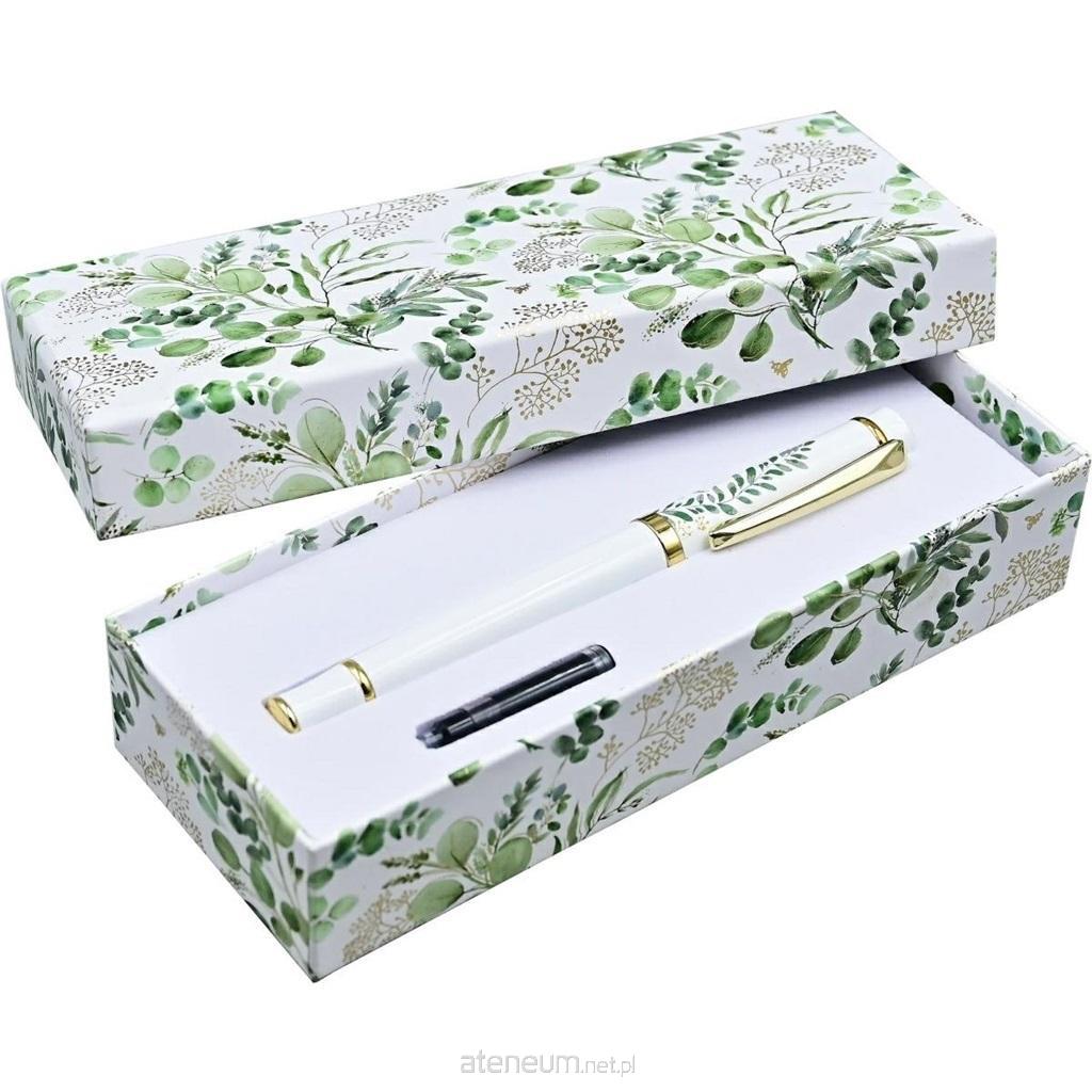 Doskonale wyważone pióro wieczne marki Peter Pauper Press Eukaliptus (Eucalyptus). Posiada irydową stalówkę, która zapewnia trwałość, lekkość pisania i płynny przepływ tuszu. Grubość pisania pióra to F - 0,5 mm. Pióro posiada wielorazowy nabój z tłokiem (zwany konwerterem) do ładowania ulubionego tuszu, ale można też używać naboi jednorazowych - pierwszy jest dołączony do zestawu. Lakierowana konstrukcja z mosiądzu zapewnia solidność i wytrzymałość. Pióro jest zapakowane w gustowne pudełko zdobione tym samym wzorem.