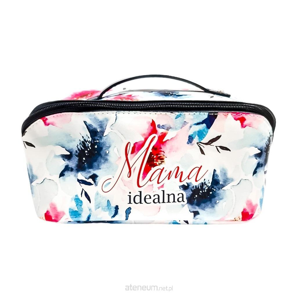 Kosmetyczka z napisem "Mama idealna", przegródki w środku ułatwiają organizację kosmetyków.