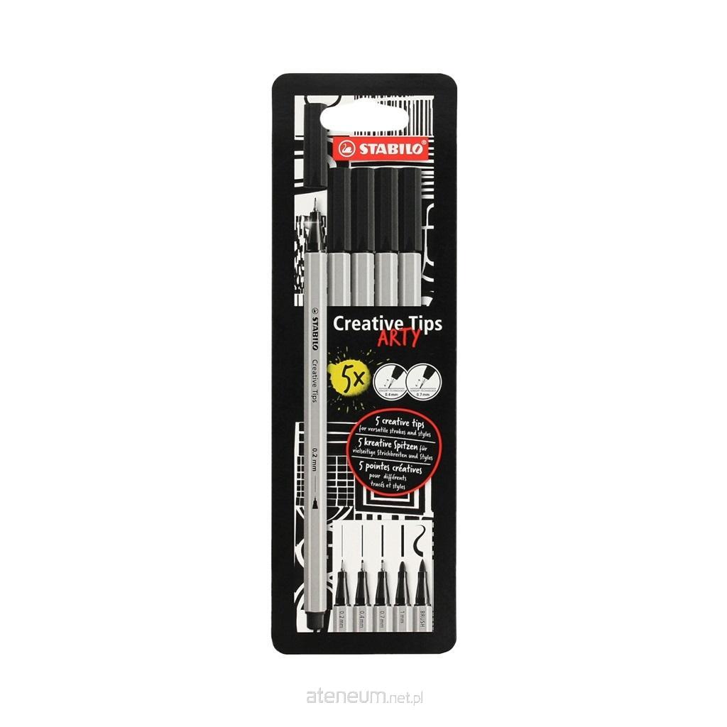 Zestaw Cienkopis STABILO point 88/Flamaster Pen 68/Flamaster Pen 68 brush - czarny - STABILO Creative Tips - kartonowe etui 5 sztuk ARTY