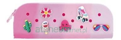 Silikonowy piórnik z kolorowymi wpinkami, to doskonałe miejsce na przechowywanie przyborów szkolnych. W zestawie znajduje się 6 wpinek, którymi można w dowolny sposób ozdabiać piórnik. Wpinki są wyjmowane, więc można się nimi wymieniać również z przyjaciółmi. Piórnik posiada jedną komorę, łatwo utrzymać w nim czystość, a zamek błyskawiczny gwarantuje, że niczego nie zgubimy. Nie zawiera wyposażenia.