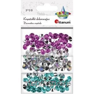 Kryształki dekoracyjne cyrkonie 3 kolory: fioletowy, przezroczysty, miętowy