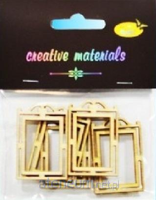 Wykonane ze sklejki, cięte i grawerowane laserowo elementy do naklejania i dodatkowego zdobienia , pakowane w opakowanie z eurozawieszką. Elementy w kształcie :ramek. Wielkość ca. 4,5 cm.Pakowane po 5 sztuk