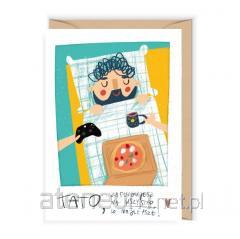 Karnet bez tekstu wewnątrz, w zestawie z białą kopertą. Wymiary: 160 x 160 mm. Wyprodukowany w Wielkiej Brytanii.