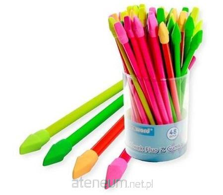 Ołówek drewniany z gumką fluo trójkątny (48szt)