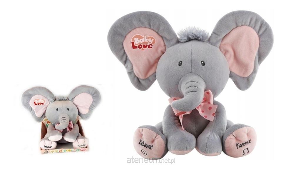Pluszowy Słonik A Kuku szaro-różowy 24cm B/O. Mówi i śpiewa po polsku. Zgadywanka i zabawa w chowanego akuku przy czym słonik zasłania oczy uszami. Zabawka z bateriami