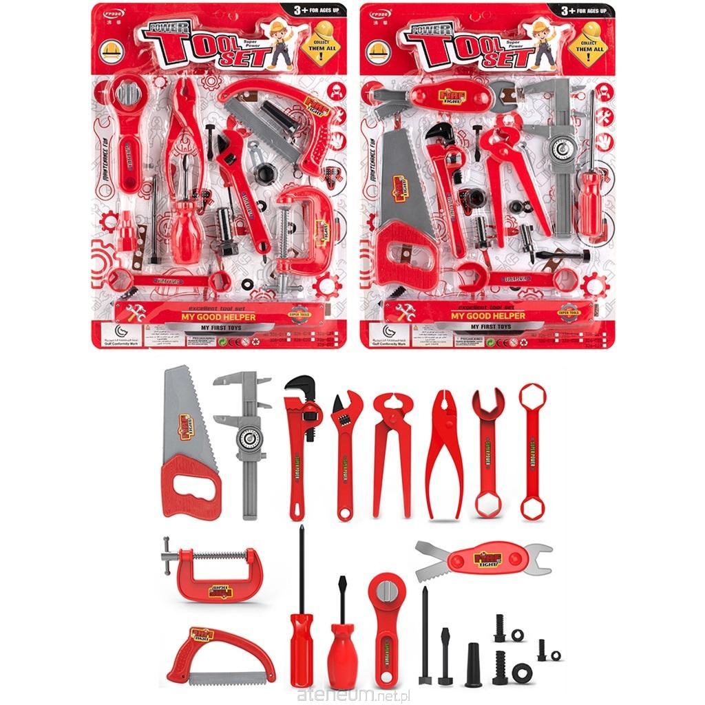 Zestaw małego majsterkowicza z narzędziami oraz śrubami.