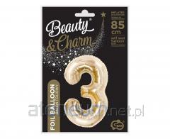 Balon foliowy B&C cyfra 3 szampański 85cm