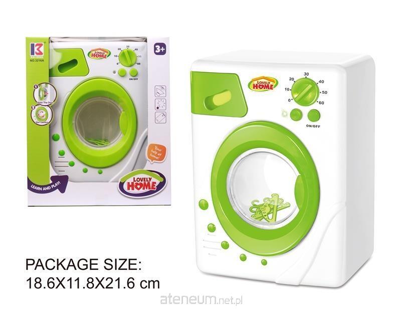Pralka z otwieranymi drzwiczkami , pokrętłem i przyciskami z dźwiękiem i światłem . Używając przyciski można zmieniać parametry prania.