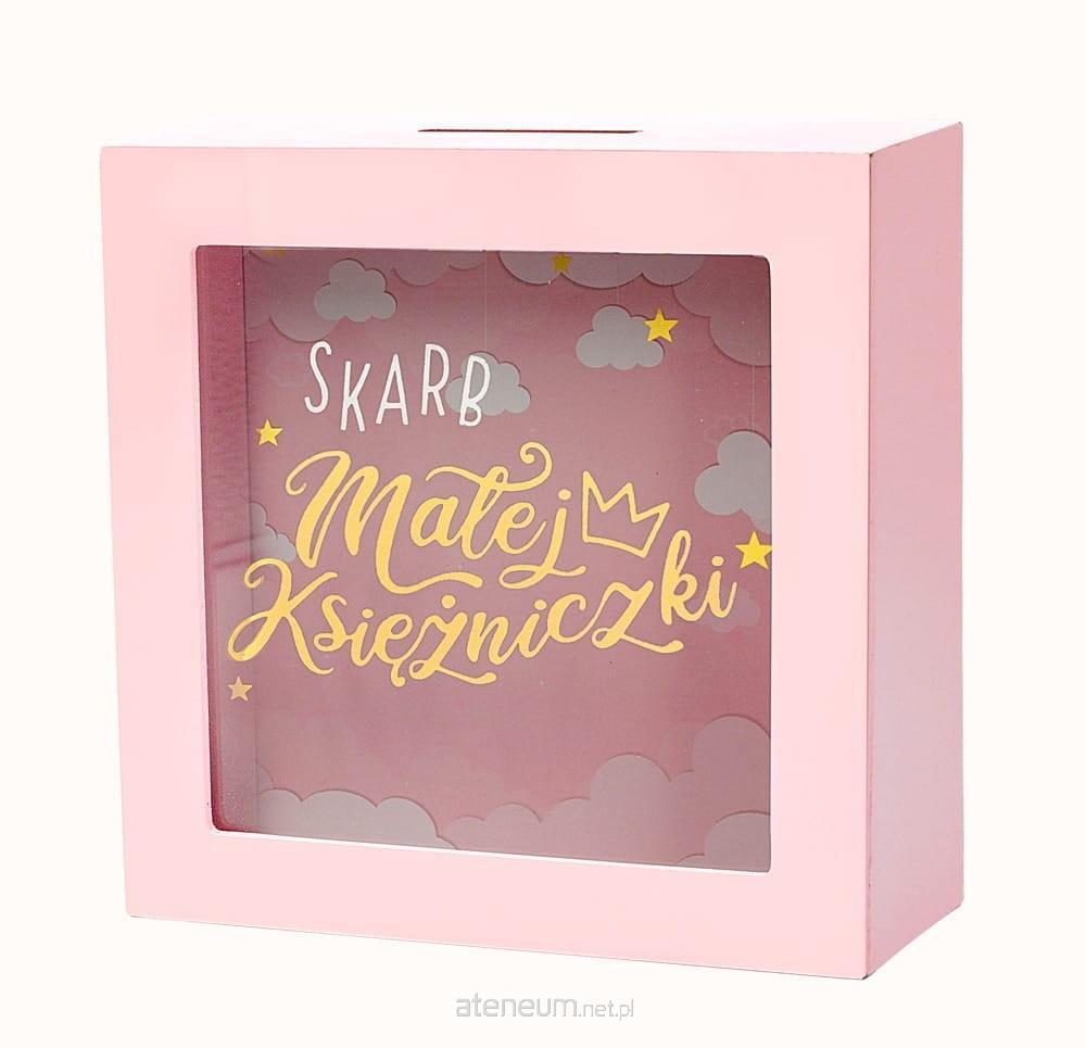 Skarbonka SKARBBOXY SBB-018 Małej księżniczki Skarbonka z serii SKARBBOXY to doskonały i niezwykły pomysł na prezent, który idealnie komponuje się w każdym wnętrzu, stanowiąc jednocześnie piękną dekorację. Wykonana z solidnej płyty MDF, skarbonka ta posiada specjalny otwór na górze do wrzucania monet i banknotów. Na szklanej szybce nadrukowany jest ciekawy napis pasujący do różnych okazji, a tło wewnątrz skarbonki zostało starannie zaprojektowane, prezentując przepiękną grafikę, podkreślającą wyjątkowy charakter skarbonki. Dzięki szklanej powierzchni można obserwować, jak skarbonka stopniowo wypełnia się oszczędnościami.. Tył skarbonki jest otwierany, umożliwiając wydobycie zgromadzonych środków na spełnienie jednych marzeń, jednocześnie zachęcając do oszczędzania na kolejne cele. Cechy szczególne: typ: skarbonka do postawienia, wielkość: 16 cm x 16cm, głębokość 5 cm okazja: ogólna
