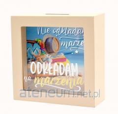 Skarbonka SKARBBOXY SBB-013 Super babka Skarbonka z serii SKARBBOXY to doskonały i niezwykły pomysł na prezent, który idealnie komponuje się w każdym wnętrzu, stanowiąc jednocześnie piękną dekorację. Wykonana z solidnej płyty MDF, skarbonka ta posiada specjalny otwór na górze do wrzucania monet i banknotów. Na szklanej szybce nadrukowany jest ciekawy napis pasujący do różnych okazji, a tło wewnątrz skarbonki zostało starannie zaprojektowane, prezentując przepiękną grafikę, podkreślającą wyjątkowy charakter skarbonki. Dzięki szklanej powierzchni można obserwować, jak skarbonka stopniowo wypełnia się oszczędnościami.. Tył skarbonki jest otwierany, umożliwiając wydobycie zgromadzonych środków na spełnienie jednych marzeń, jednocześnie zachęcając do oszczędzania na kolejne cele. Cechy szczególne: typ: skarbonka do postawienia, wielkość: 16 cm x 16cm, głębokość 5 cm okazja: ogólna