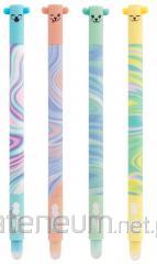 Obudowa plastikowa z perłowym połyskiem i gumowym uchwytem. Dzięki unikalnej formule tuszu napisany tekst można łatwo wymazać. Gumka do wycierania znajduje się na końcu obudowy. Ściera czysto i nie niszczy papieru. Grubość linii pisania 0.5 mm. Kolor wkładu: niebieski (crystal blue). Na wymienne wkłady - Standard A