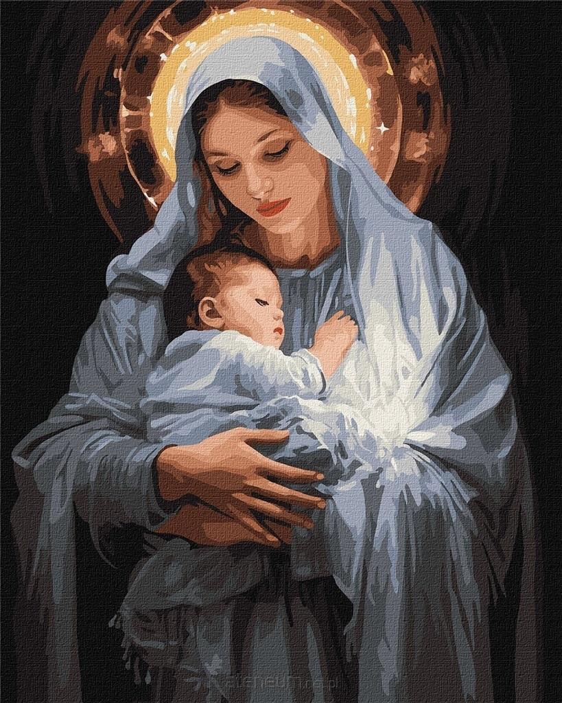 Malowanie po numerach - Czułość matki z metallic extra farbami 40x50cm