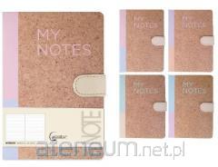 Ozdobny notatnik w formacie A5 z kartonową okładką i elastyczną gumką do zamykania. W środku znajduje się 96 stron w linie.