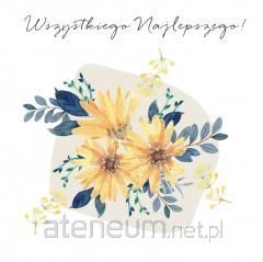 Karnet bez tekstu wewnątrz, w zestawie z białą kopertą. Wymiary 160 x 160 mm. Wyprodukowany w Wielkiej Brytanii.