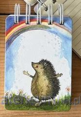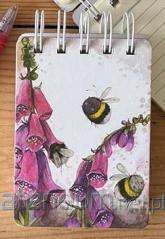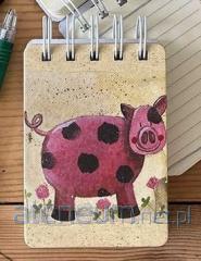 Ozdobny kołonotatnik w formacie A7 z twardą okładką, otwierany do góry. W środku znajduje się 112 stron w linie. Z tyłu zawiera małą, plastikową kieszeń, w której można przechowywać dodatkowe notatki, paragony itp.