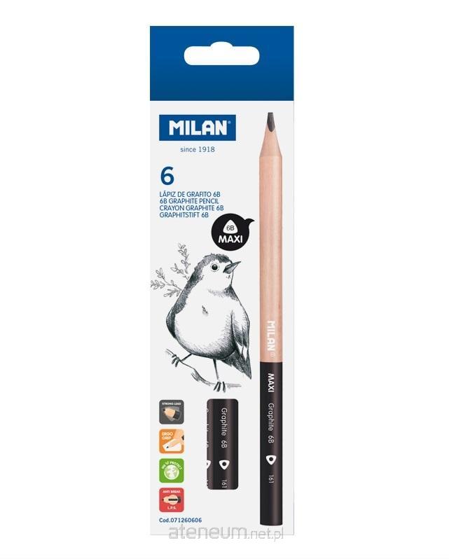 Ołówki trójkątne MAXI 6B. Grafit jest bardzo miękki, dzięki czemu nadaje się do rysunku artystycznego. Posiadają unikalny system Lead Protection System (LPS), który zwiększa odporność grafitu na złamania poprzez przyklejenie go do drewna. Drewno pochodzi ze zrównoważonych plantacji. średnica grafitu: 5 mm. Wymiary ołówka 17,5 x 1 cm.