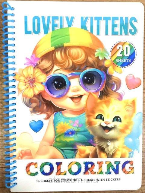 Kolorowanka dla dzieci. Zawiera 16 kartek z obrazkami oraz 4 strony wypełnione naklejkami. Okładka pokryta brokatem.