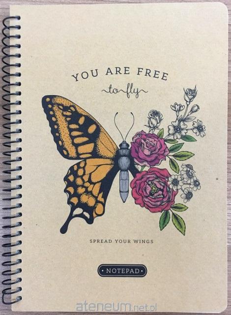 Kołonotatnik N9594 A5 80 kartek kratka kraft Motyl, gramatura papieru 70g/m2.