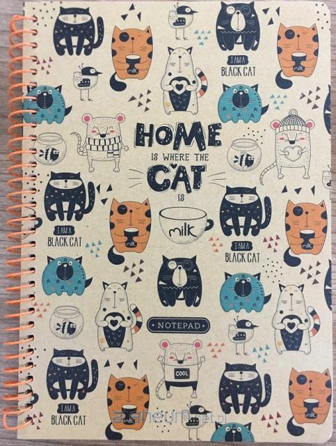 Kołonotatnik N9598 A5 80 kartek kratka kraft Zabawne kotki, gramatura papieru 70g/m2.