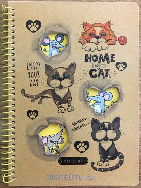 Kołonotatnik N9604 A5 80 kartek kratka kraft Koty i myszy, gramatura papieru 70g/m2.