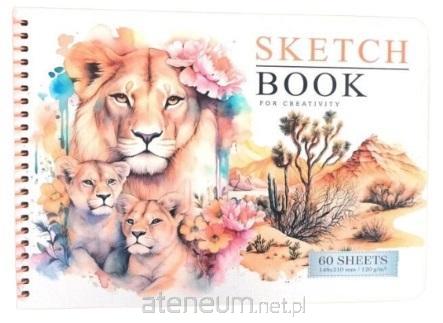 Szkicownik N9590 A5 koło 60 kartek gładki Lwy, gramatura papieru 120g/m2