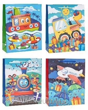 Torebka prezentowa Pojazdy 18x23x8cm A5, mix 4 wzorów