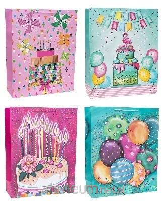 Torebka prezentowa urodzinowa L szerokie dno mix