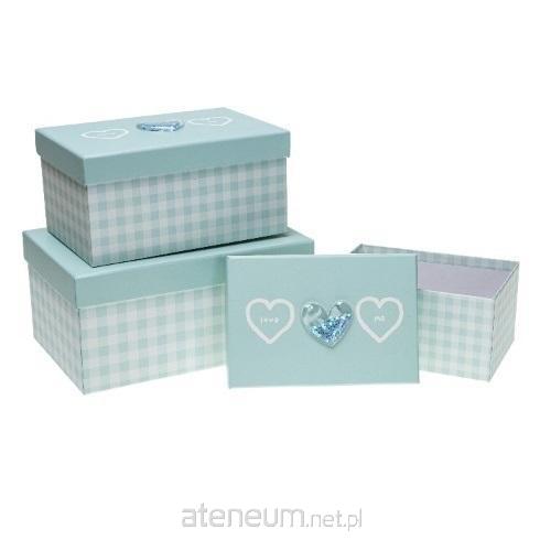 Zestaw pudełek prezentowych 3szt, motyw zielonej kraty z sercami