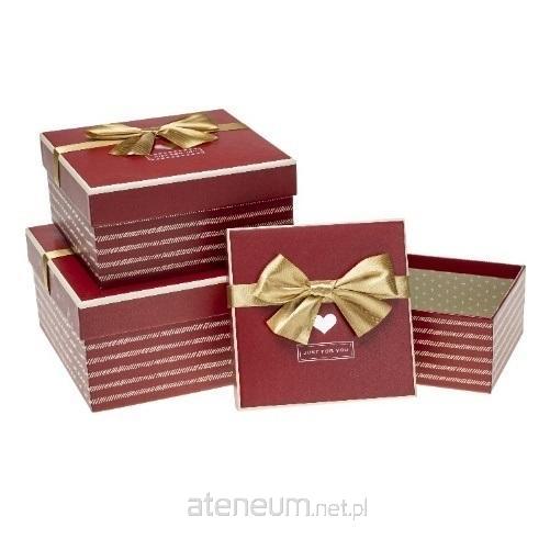 Pudełko prezentowe z kokardą 3szt czerwony ROZETTE