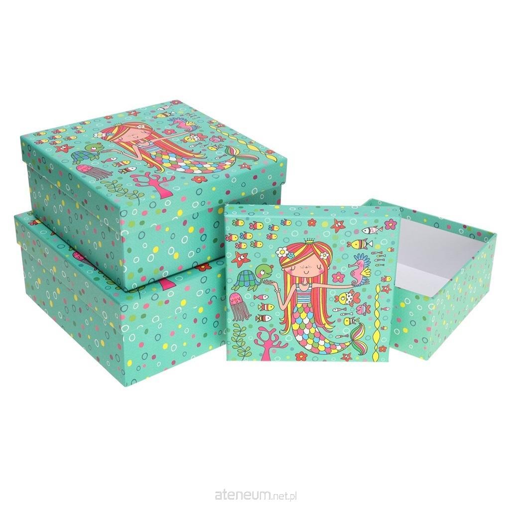 Zestaw pudełek prezentowych kwadratowych 3szt, motyw morski z syreną