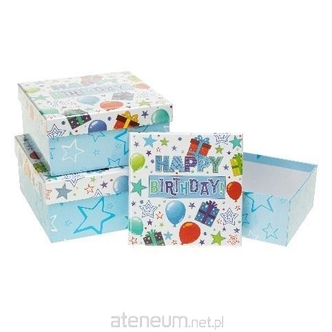 Zestaw pudełek prezentowych 3szt, motyw urodzinowy z napisem Happy Birthday