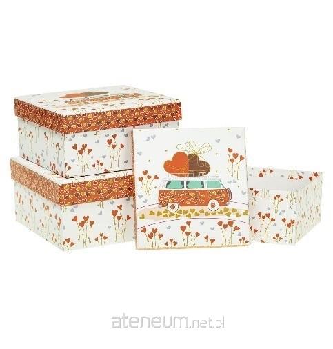 Zestaw pudełek prezentowych 3szt, motyw z serduszkami