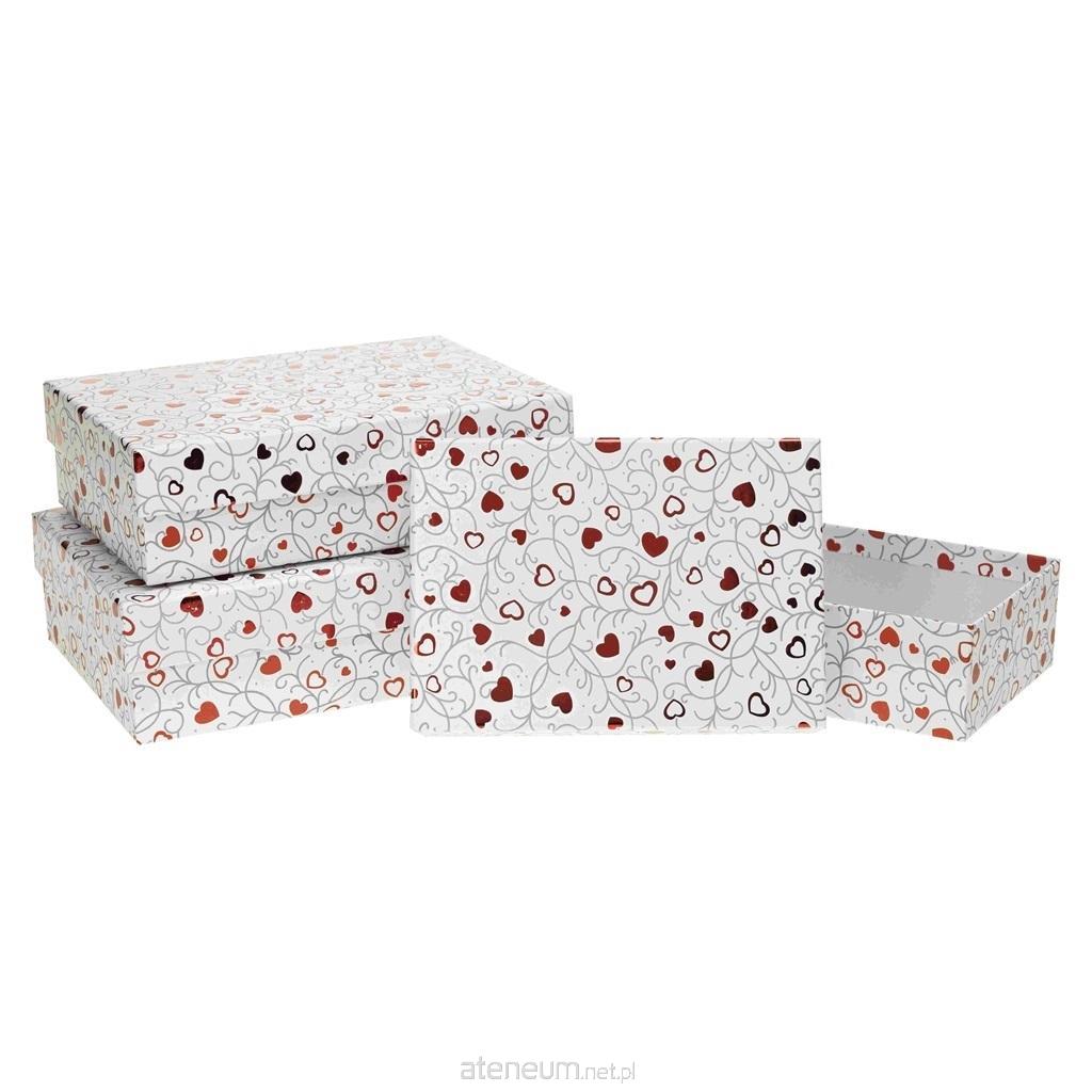 Zestaw pudełek prezentowych 3szt, motyw biały z sercami