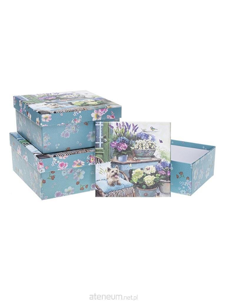 Zestaw pudełek prezentowych 3szt, motyw niebieski z kwiatami