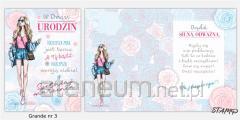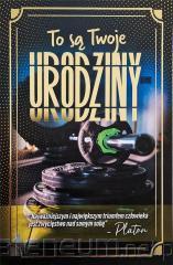 Karnet okolicznościowy na urodziny z kartką zdrowia z kopertą i tekstem wewnątrz i miejscem na osobiste życzenia