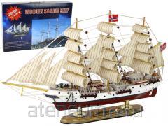 Statek Łódź Drewniana Kolekcjonerski Żaglowiec Okręt Model ten to statek żaglowiec "Danmark". Nazwa ta jest umieszczona na drewnianej podstawce, co dodaje autentyczności i umożliwia identyfikację tego konkretnego statku. Na samej górze żaglowca widoczna jest flaga Danii , co podkreśla pochodzenie statku oraz jego związek z tym krajem. Żagle tego modelu są imponująco rozwinięte i dodają majestatycznego wyglądu. Są one białe z czarnym wzorem, co tworzy efektowny kontrast i podkreśla piękno żagli. Kadłub statku jest głównie w kolorach czerwono-białych, z zielonym paskiem, co nadaje mu wyjątkowy charakter i styl. To połączenie kolorów jest nie tylko estetyczne, ale także tradycyjne w żeglarstwie. Po bokach kadłuba widoczne są małe okna kajut, co dodaje realizmu i wskazuje na wnętrza statku, gdzie załoga mogła odpoczywać i pracować. Na bokach dziobu widoczne są kotwice, co jest typowym elementem żaglowców i odnosi się do ich funkcji w portach i na morzu. Na pokładzie statku widoczne są łodzie ratunkowe, które są kluczowym elementem bezpieczeństwa na morzu. Te detale dodają autentyczności i realizmu modelowi. Na kabinie nawigacyjnej znajdują się klaksony i światła ostrzegawcze, co wskazuje na jej ważną rolę w sterowaniu i prowadzeniu statku. Całość jest zapakowana w oryginalne pudełko z motywem statków, co nie tylko ułatwia przechowywanie, ale także czyni tę zabawkę idealnym prezentem dla miłośników żeglugi i kolekcjonerów. Ten model kolekcjonerski żaglowca Danmark to nie tylko piękna ozdoba, ale również hołd dla morskich tradycji i historii. Jest on doskonałym sposobem na eksplorację świata żeglugi i fascynującego życia na morzu. Zawartość zestawu : - Statek - Oryginalne pudełko Wymiary statku : 52 cm x 33 cm x 9 cm Wymiary opakowania : 54 cm x 35 cm x 11 cm Statek posiada certyfikat CE. Przeznaczona jest dla dzieci powyżej 3 roku życia.