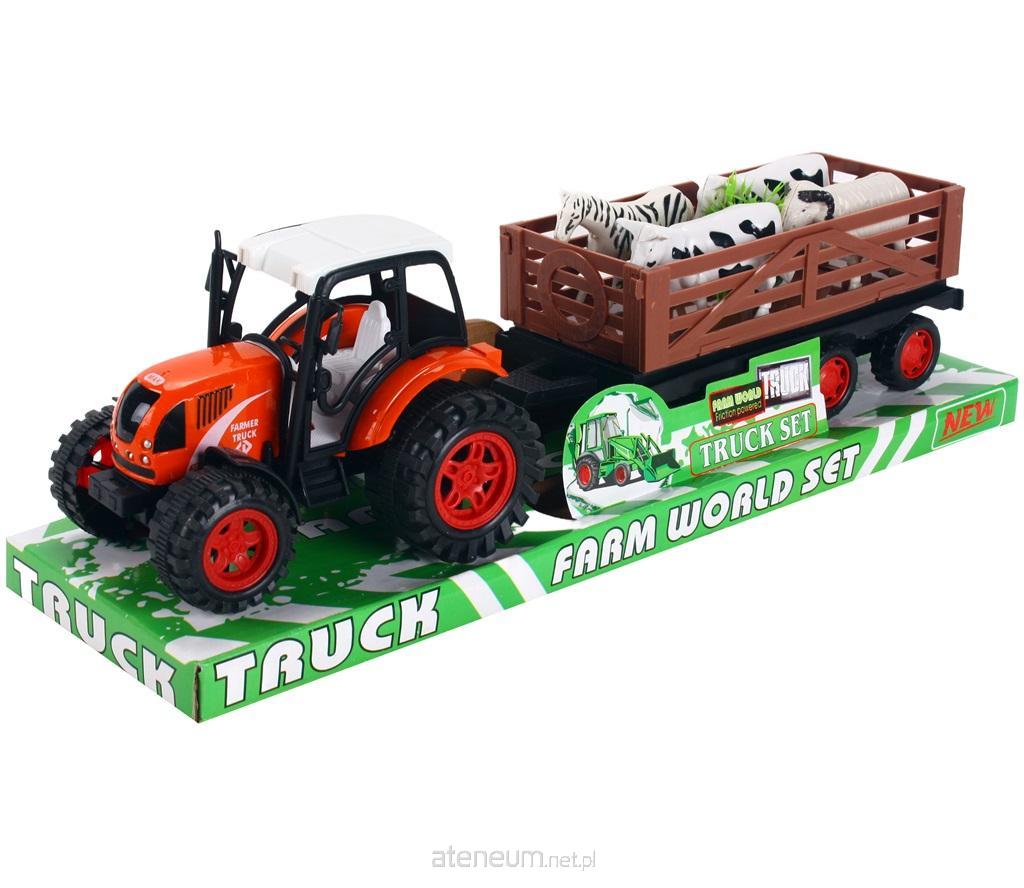 Traktor z napędem. W zestawie z przyczepą ze zwierzętami.