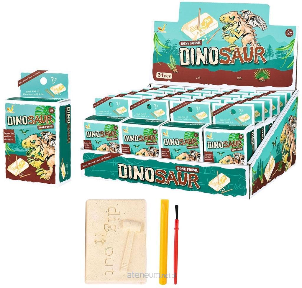 Zestaw zawiera gipsowy odlew z którego za pomocą narzędzi należy wydobyć szkielet dinozaura, świetny zestaw, który pozwoli dziecku poczuć się jak naukowiec paleontolog.