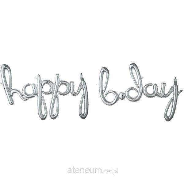Balon foliowy Happy Bday srebrny